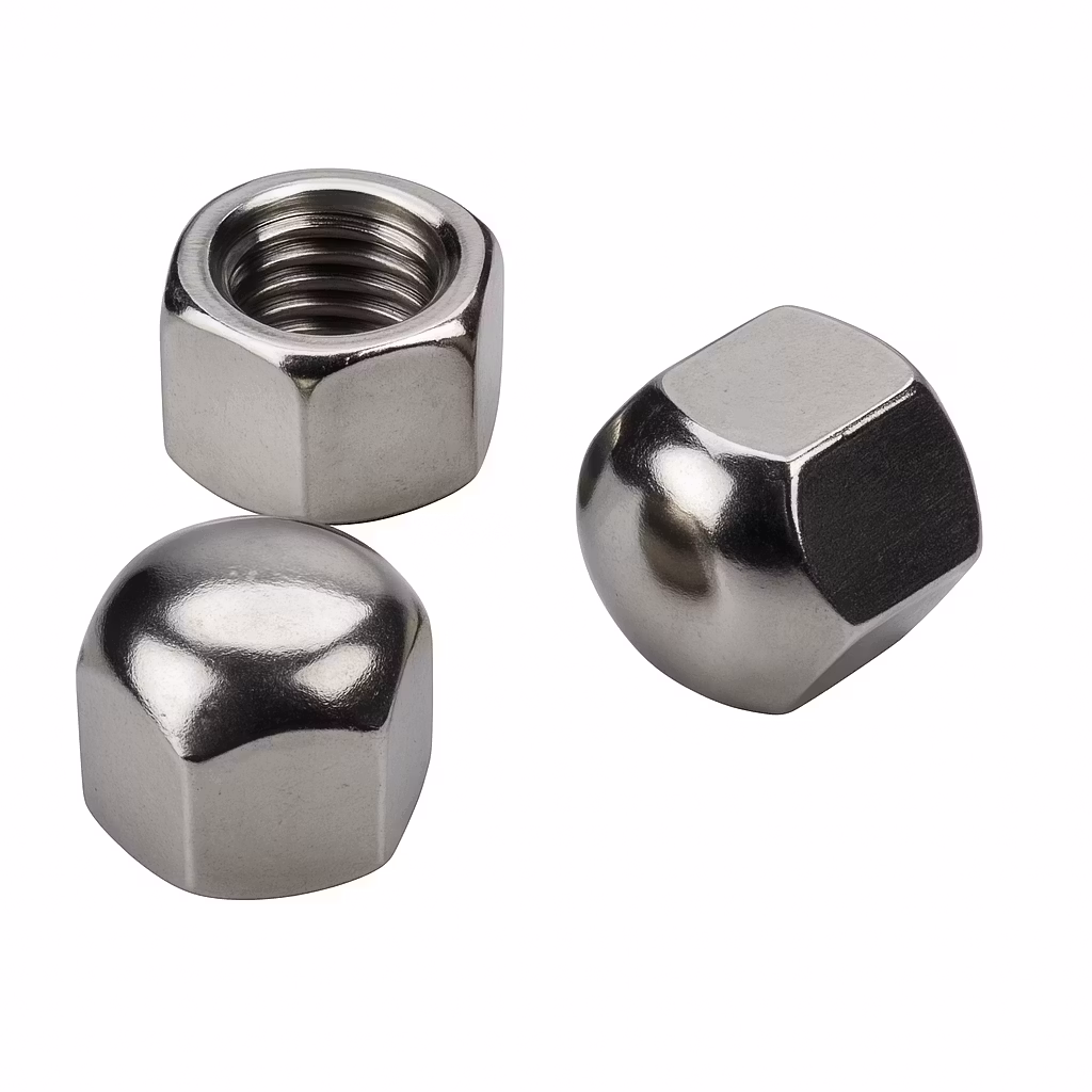 - Form: Sexkantig mutter med sluten kupolformad topp