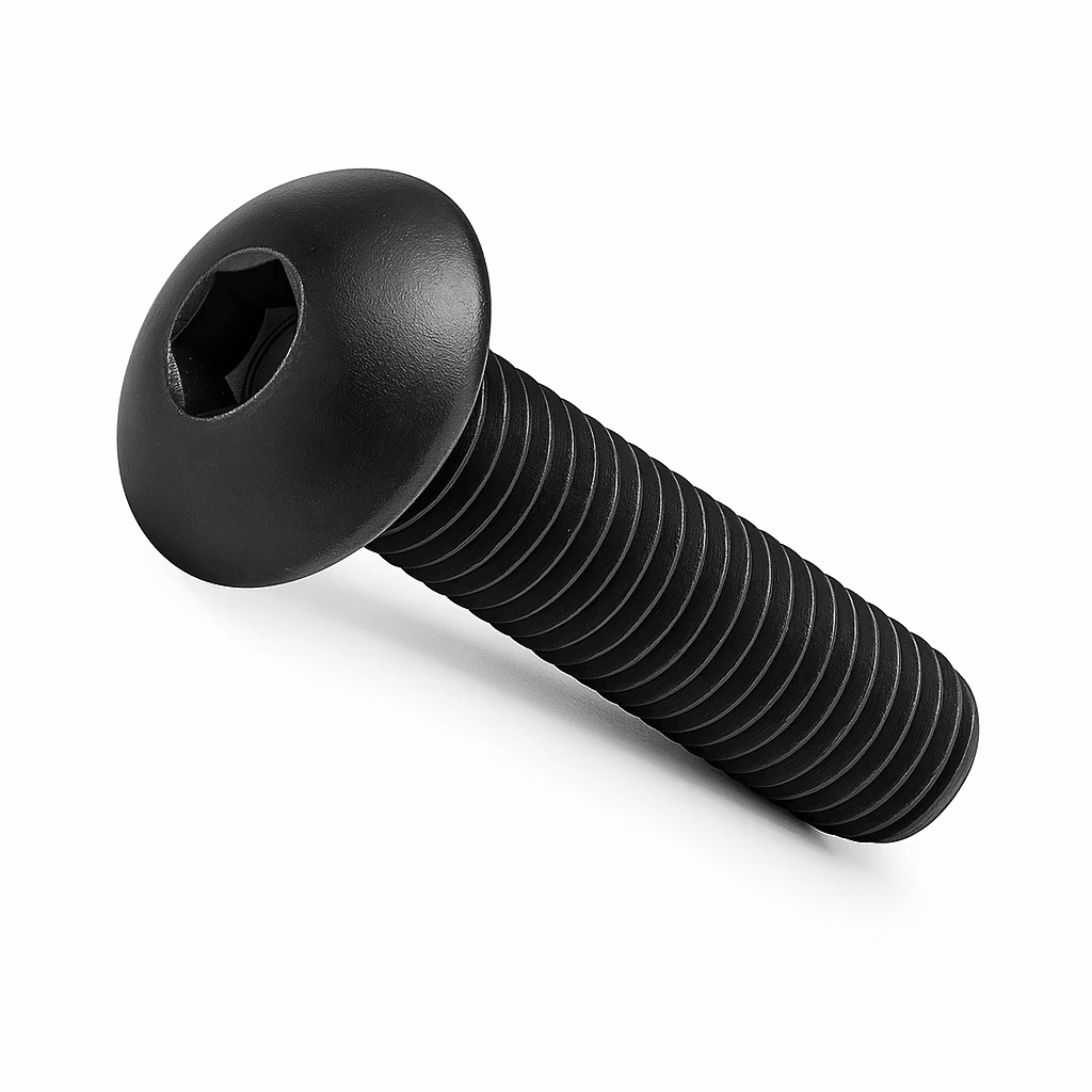Svart rostfri kullrig insexskruv (ISO 7380) ger ett prydligt synligt avslut på beslag, kapslingar och räcken. Black oxide ger en enhetlig, matt svart finish som matchar övriga svarta A4-fästdon.